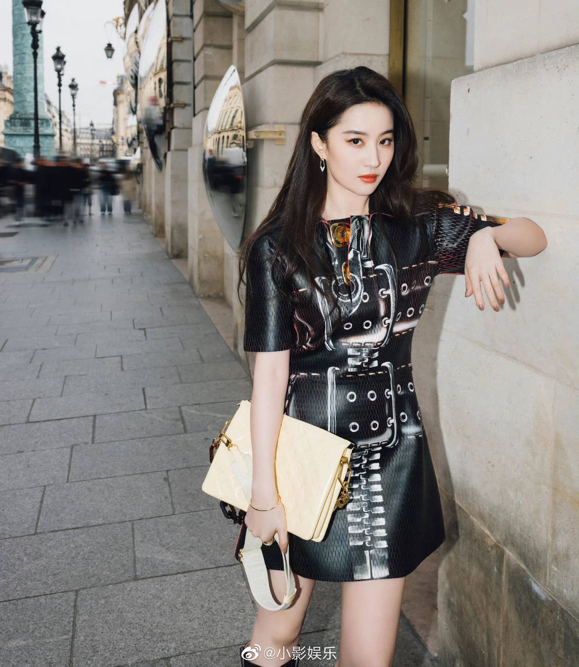 刘亦菲和周冬雨的看秀造型,周冬雨一部分都被楼梯挡起来了,是给楼梯代言吗?#刘亦菲巴黎看秀造型#
