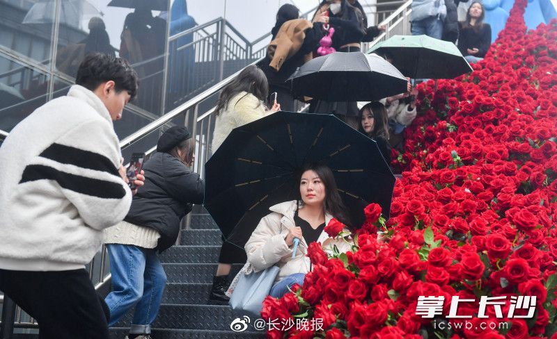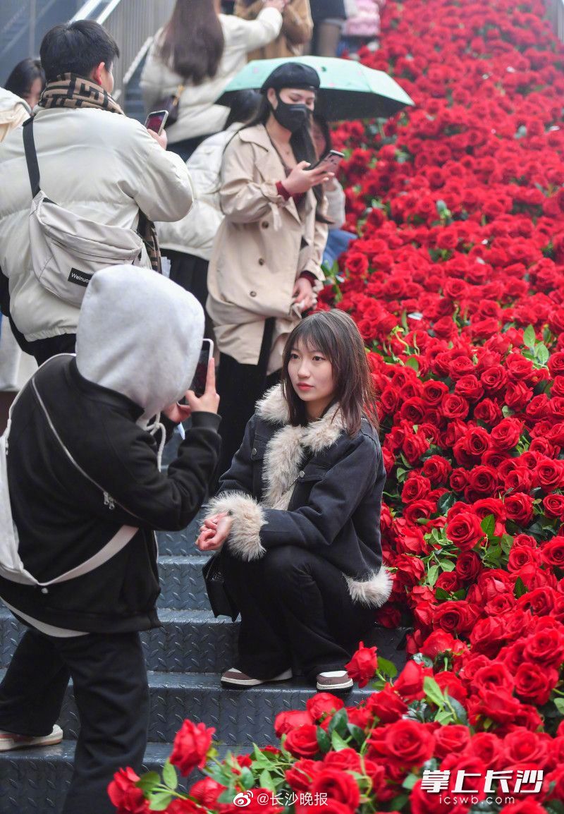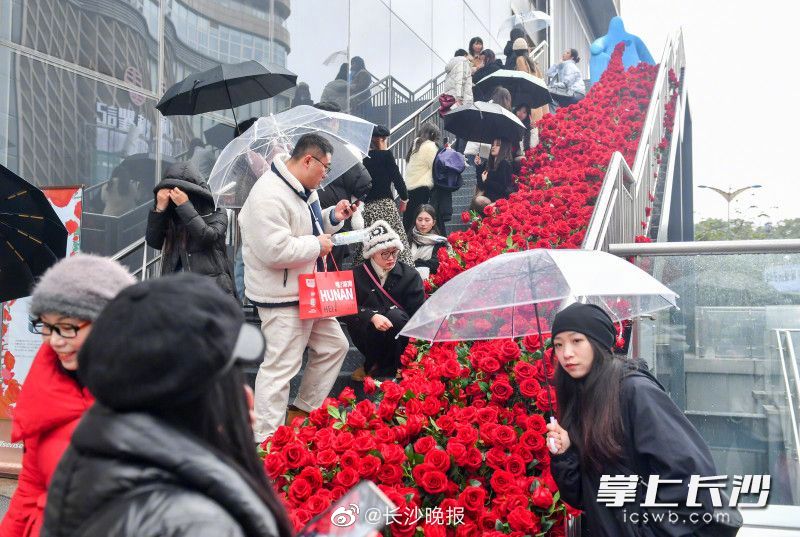 【超浪漫的#长沙玫瑰楼梯#,你打卡了吗?】今日,“网红长沙”街头处处被浪漫气息包围,坡子街海信广场旁的楼梯上摆满了玫瑰,悦方购物广场的LED大屏上更是放出大大的爱心,吸引着市民游客纷纷打卡拍照,记录美好时刻。(长沙晚报)#长沙春游指南##长沙[地点]#