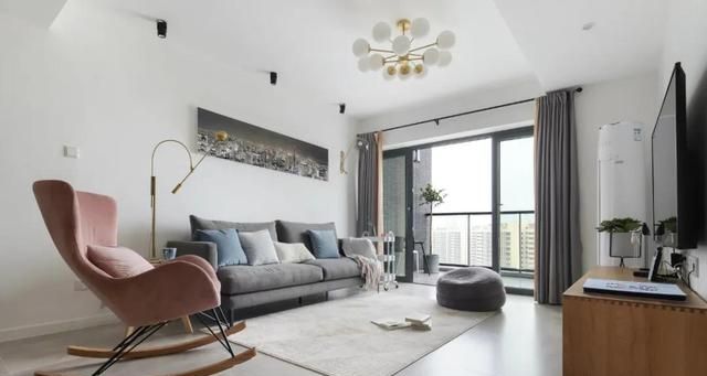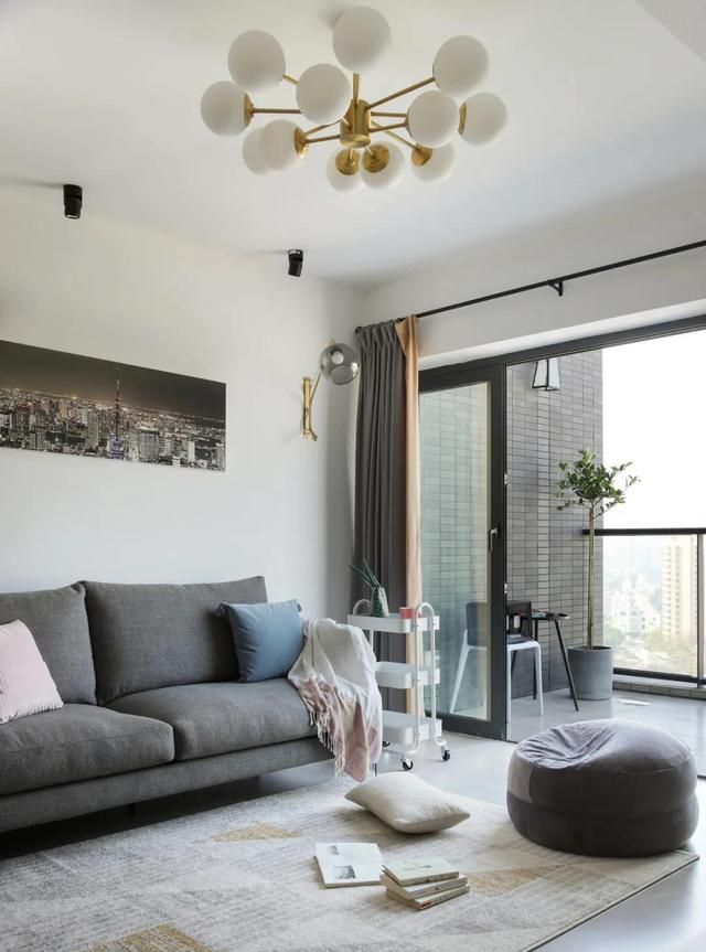 这个是客厅的整体效果,电视墙和沙发墙都没有做造型,地面是灰色的哑光瓷砖,其实面积也不怎么大,但是就看着很宽敞。