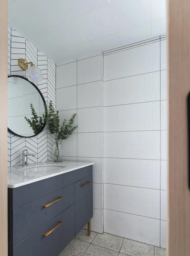 卫生间装的是谷仓门,做成了干湿分离的格局,地砖是水磨石的,比较防滑,挺实用。