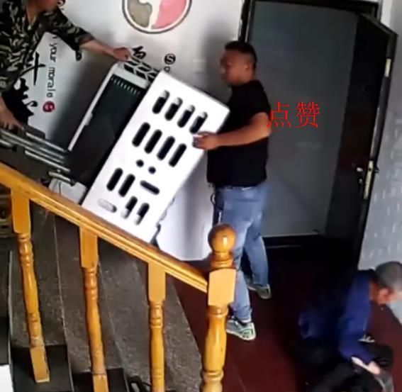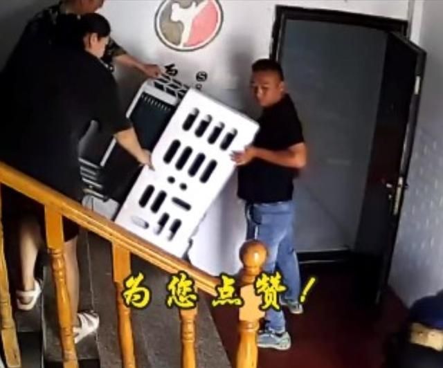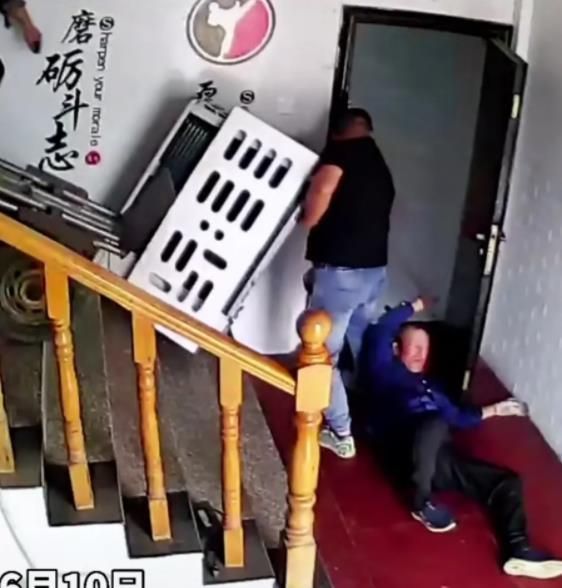 6月10日,江苏淮安一位上了年纪的搬家师傅在运送空调外机时一脚踏空跌倒,直接从楼梯上滚到拐角处,他还没能挣扎着站起来的时候,空调外机也随着滚落,眼看就要砸在他身上,就在这千钧一发的危急时刻,一个小伙子犹如神兵天降,一个健步冲上去,用自己的身体挡住沉重的空调外机,把摔倒的搬家师傅护在了身后。