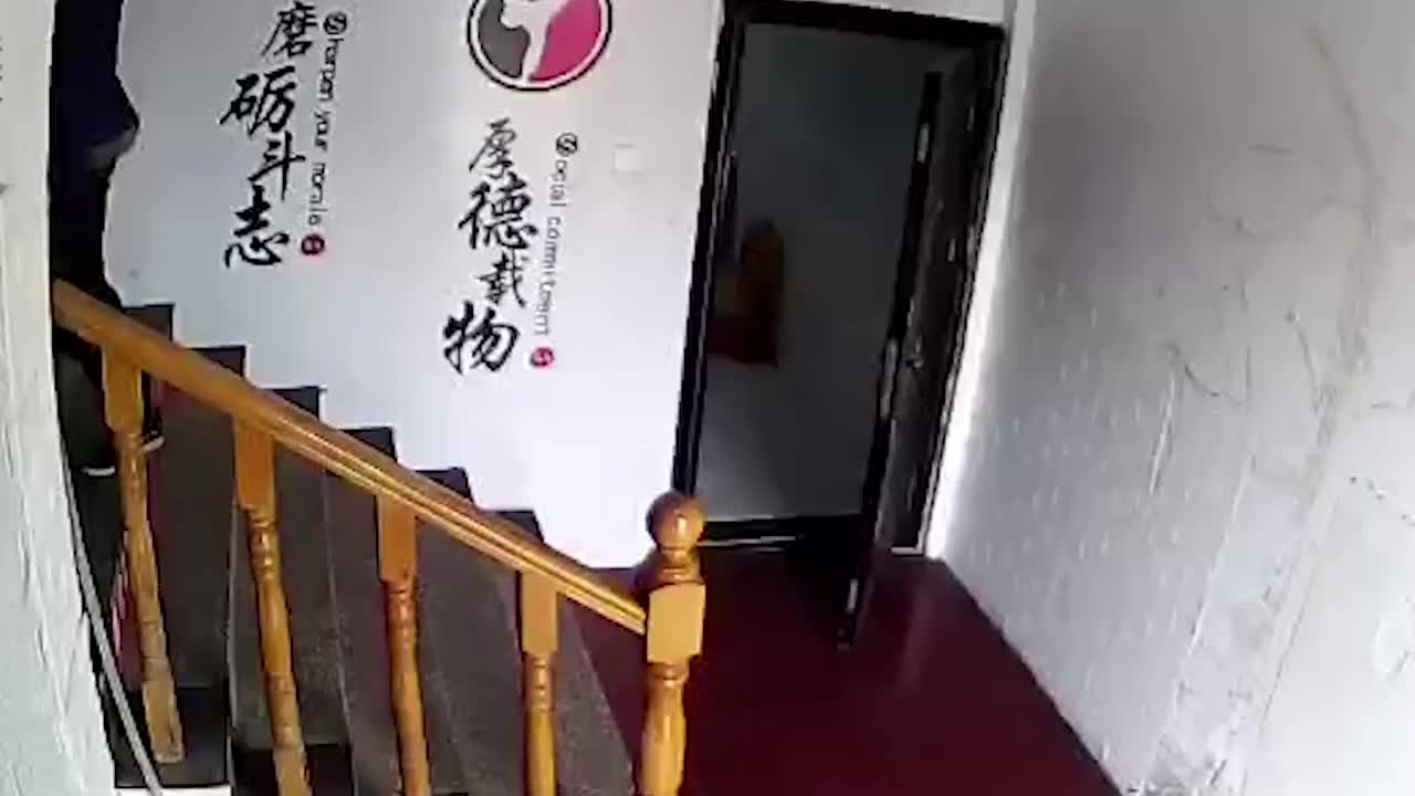 老师傅搬运空调外机摔下楼梯 外机瞬间跌落 幸好小伙及时出手相助