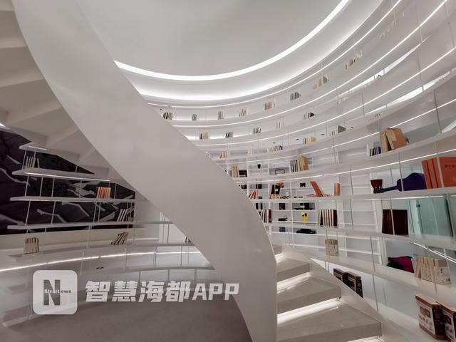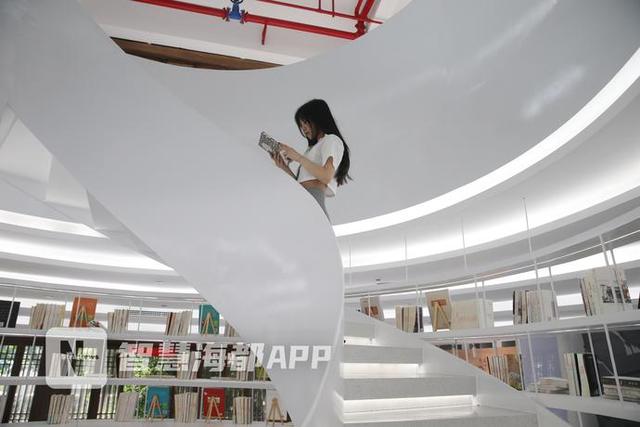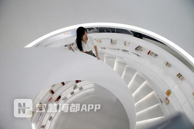 球形展架上,成列可以免费阅读的图书;四周环形座椅,可以容纳数十名游客;螺旋状的楼梯带来时空的穿梭感……